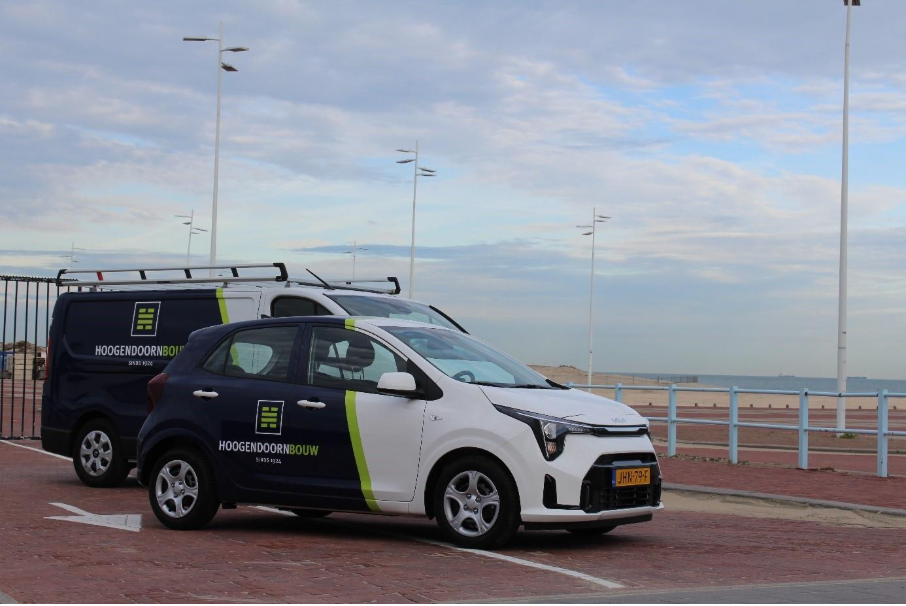 Voor de uitbreidingen van het wagenpark heeft Hoogendoorn Bouw samengewerkt met onder meer leasemaatschappij Ayvens en Trim-Line voor automotive design (belettering en carwraps)